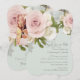 vintage blomster förhandsinbjudandammig mint suckulent blad grönskaromantisk rosafärgad ros bröllopvår sommar höst formell elegantbotanisk trädgårds ceremonielfenbensvita målade blommordammig salvia grön grönskafotografi på förlovade pardin egen fotomallaudreyjeanne audrey jeanne roberts