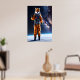 Den vackra rödräven i rymden kostym står på en främmande planet med rymden i bakgrunden. Det här är en AI-skapad konst.