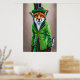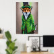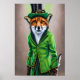 Den söta rödräven i Saint patrick's day med grönt och grönt och svart hatt. Det här är en AI-skapad konst.