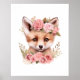 Rödräv Rosa Blommig Flickrum Tryck Poster