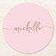 Rosa modern guldmonogram Namn Signatur Skript Anpassad Personlig Rund Pappers Coaster. Dessa mönster har ditt förnamn i en vacker handskriven svans typsnitts signatur typografi i guld färg på ljus baby rosa eller rosa färg bakgrund. Så lätt att anpassa. Stor snygg feminin husvärmegåva, också för födelsedag, bröllopsfest, bröllop, sweet 16 födelsedagsfest, mors dag, baby shower, för examensfest och Det är för tjejen som älskar unika minimala snygga saker.