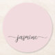 Rosa Monogram Namn Signatur Script Anpassad Personlig Rund Pappersunderlägg. Dessa design har ditt förnamn i en vacker handskriven svansfont signatur typografi på rosa eller pastell dammig rosa. Dessa är lätta att anpassa. Fin stilfullt kvinnlig husvärmegåva, även för födelsedag, bröllop, brud shower, sweet 16 födelsedagsfest, mors dag, baby shower, för examensfest och Det är för tjejen som älskar unika minimal stilfullt saker.