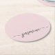 Rosa Monogram Namn Signatur Script Anpassad Personlig Rund Pappersunderlägg. Dessa design har ditt förnamn i en vacker handskriven svansfont signatur typografi på rosa eller pastell dammig rosa. Dessa är lätta att anpassa. Fin stilfullt kvinnlig husvärmegåva, även för födelsedag, bröllop, brud shower, sweet 16 födelsedagsfest, mors dag, baby shower, för examensfest och Det är för tjejen som älskar unika minimal stilfullt saker.