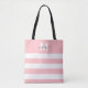 Personlig påse med elegant rosa och vita ränder samt modernt typsnitt. Lägg till en touch av feminin elegans och lekfull stil till din vardag med denna snygga totepåse. Med en slank vit initial centrerad på en mjuk rosa bakgrund, i kombination med en snygg svart namnmonogram i typsnitt högst upp, får påsen ytterligare en touch med feta vita och rosa ränder längst ned, vilket ger den en trendig och feminin prägel. Perfekt som brudtärna-gåva, möhippa-present eller som en genomtänkt gåva till en systersyster, dotter eller mamma, är denna påse också ett fantastiskt val för alla speciella tillfällen som födelsedagar, mors dag eller högtider. Praktisk och stilren är denna personliga påse ett elegant, roligt och personligt tillskott till varje fashionabla girls garder