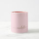 Flickaktig minimalistisk enkel rosé elegant guldmonogramnamn signatur skript anpassad personlig kaffemugg. Dessa design har ditt förnamn i en snygg handskriven stilisert svansfont signatur typografi skript i guld på baby rosa eller ljus rosé bakgrund. Lätt att anpassa. Snygg stilren feminin husvärmningspresent, även för födelsedag, sweet 16 födelsedagsfest, mors dag, bröllop, bröllopsdusch, baby shower, för examensfest och den är för flickan som älskar snygga unika saker.