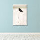 Konsten har en montanröd svartfågel som genomsyras av en lång känslig barren vintertid gren på färgaden av foggy neutralt. Originalkonst av Featherfall Studio.