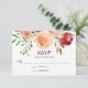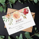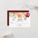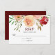 En underbar burgundröd bröllop OSA med en vacker persikoblommebukett ovanför den vackra typografin en Espanol. Svara aceptar, beklagligt med det spanska kortet.