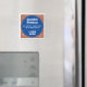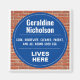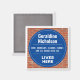 Rojlig present i form av en kylskåpsmagnet. Blå och vit plakett på en tegelvägg. Redigera designen för att ändra texten så att den passar mottagaren.