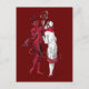 En älskvärd vintageillustration av en kvinna och att ha på sig en röd och vitöverrockklänning med röda häl och en hatt som röker en cigarett, med en djävulen. Hon har svart hår och vit att flå. Djävulen ser den halva manen, halv get, med en mycket lång svan och horns. Hans svan slås in runt om kvinnan, och han är hållande en kedja, som kedjas till kvinnan som röker. Mycket enkelt och charmigt. Underbar för någon, som gillar vintagedesigner av djävular eller röka för kvinna.