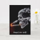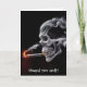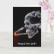 En luftig dödskalle gjord av rök framträder och håller en tänd cigarett mellan tänderna för någon som slutat röka.