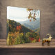 Höstlövningen visar det briljanta färg längs bergstopparna i rökbergen. Den ljusa nyansen av orange och gult i den här utskriften fångades en dag när blåröken var synlig.