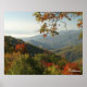 Upprörande vy från överblicken över Newfound Gap i rökbergen. Höstlövböljor med färg av orange, rost, rött och gult.