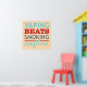 Typografi om ångning, med mottot "Vaping-slag rökning när som helst" skrivet i vibrerande grönt, rött och grått. Ett enastående budskap om njutningen - och fördelarna - av att sluta röka via tarm.