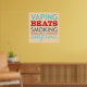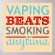 Typografi om ångning, med mottot "Vaping-slag rökning när som helst" skrivet i vibrerande grönt, rött och grått. Ett enastående budskap om njutningen - och fördelarna - av att sluta röka via tarm.