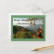 En svart björn unge tittar ner från en post. I bakgrunden är det en hisnande bild av de Underbara rökiga bergen. Digitalt manipulerad.