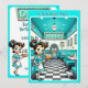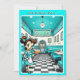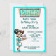 Rolig 1950-tals Retro-restaurang Födelsedagsfest Tårta akvatisk turkos blå Vit Festinbjudan. Observera: Alla platta bilder!