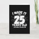 Denna roliga 25-årsdag design gör en bra sarkastisk humor skämt eller noveltet gåva för en 25-årig födelsedagstema eller överraskning 25-årsfest! Innehåller 'Jag klarade mig till 25 år...Inget skrämmer mig' rolig 25-års meme som kommer att få massor av skratt från familj, vänner, festsällskap och födelsedagsbarnet också!