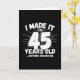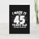 Denna roliga 45-årsdagsdesign gör en bra sarkastisk humor skämt eller nyhetspresent för en 45-årig födelsedagstema eller överraskning 45-års födelsedagsfest! Innehåller "Jag klarade mig till 45 år...Inget skrämmer mig" rolig 45-årsdag meme som kommer att ge massor av skratt från familj, vänner, festsällskap och födelsedagsbarnet också!