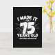 Denna roliga 75-årsdag design gör en bra sarkastisk humor skämt eller nyhetspresent för en 75-årig födelsedagstema eller överraskning 75-årsfest! Innehåller "Jag klarade mig till 75 år...Inget skrämmer mig" rolig 75-års meme som kommer att ge massor av skratt från familj, vänner, festsällskap och födelsedagsbarnet också!