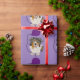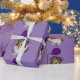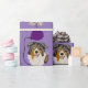Den roliga australian shepherdvalphunden är hållande en purpurfärgad ballong i denna roliga unika original- konst som slår in papper. Underbar för födelsedagar och firanden.
