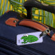 Uppsluppen design för tecknadgröntgroda. Han är gullig och roligt och fullt av personlighet. Underbar gåvaidé. Skräddarsy din initialer på bekläda och personligt info på baksidaen. Den roliga färgrika designen hjälper att identifiera bagage snabbt.