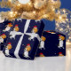 Rolig Beaglehund som ha på sig den Santa hatten Presentpapper