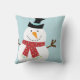 Det gulliga snögubbeteckenet på ett ljust - slösa bakgrund (du kan skräddarsy bakgrundsfärgen). Du kan personifiera denna kudder med efternamn eller barns namn. Ideal för en rolig modern helgdagardekoration för ditt vardagsrum, barnsovrum eller barnkammare. Några inslag vid GrantAvenueDesign.