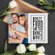 Gör dig redo att få dina gäster att fnissa med vårt roliga och underhållande roliga fotobryllops-kort "Spara datumet"! Detta busiga och charmiga kort har med ditt favoritfoto och ett roligt meddelande som lyder "Sprit, mat och dåliga danssteg".