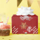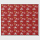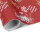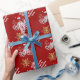 Den festliga personligjulhelgdag som slår in papper design med guld- vintersnöflingor för vit och röd anpassadebakgrund och en rolig steampunkbläckfisk kraken Santa med julaftonpresenter. Personifiera denna design, genom att tillfoga ditt efternamn, eller julaftonen text somhälsningen BEHAR, NOTERAR guldet är inte metallisk