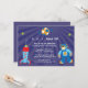 Denna 5x7 pojkars födelsedagsinbjudan har ett rymdraket tema. Det finns en raket som flyger och en astronaut med en måne och stjärnor flytande runt omkring. Du kan enkelt anpassa detta med din festinformation i mitten. Grafik av Blackleaf Studios på MyGrafico
