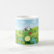 Rolig blinkande groda på näckrosblad damm kaffemugg