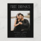 Skicka denna roliga spara-datum postkort för att dela med dig av ditt bröllopsdatum med familj och vänner. Välj ett fantastiskt foto av dig och din partner och låt dina gäster veta att de ska markera sina kalendrar för årets fest! Våra "Gratis drycker (och vi gifter oss)" design spara datum är perfekta för det roliga paret som inte kan vänta med att fira på sitt bröllop med familj och vänner.