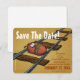 Använd detta roliga kort för ditt "spara datumet"-meddelande för tidiga bröllopsannonseringar. Med en rolig tecknad bild av en dadelpalmfrukt som är bunden vid ett järnvägsspår, kommer det garanterat att bli uppmärksammat och ge skratt! Lätt att anpassa! Skriv bara in din information i de angivna fälten eller klicka på "anpassa" för ännu mer kreativ kontroll! Glöm inte att de kommer ihåg dig... skicka dem detta roliga kort!