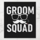 Djärv och humoristisk "Groom Squad"-design med coola solglasögon, en stilren mustasch och en smokingdetalj. Perfekt för möhippor, förbröllopsfirande och matchande brölloppsfestkläder.