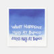 Bunco-kväll kan vara full av kul och skratt så varför inte få några skratt med denna roliga Bunco-servett? Blå ombre med modern typsnittsdesign texten lyder "Vad som händer här på Bunco stannar här på Bunco" Perfekt för din spelkväll eller tjejernas utekväll.