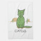 Denna roliga handduk presenterar en enkel teckning av en grönt, enformad kaktus eller "en catcus.", Catcusen visas i förgrunden med två stamgästkaktus i avståndet som är främre av två mesas. En handduk för någon en vem uppskattar den ofta prickly naturen av katter.