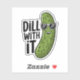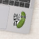 Denna roliga dekal är perfekt för dillälskare och de som uppskattar punsk humor! Med en snygg dill som bär solglasögon och frasen "Dill With It" är denna design ett lekfullt sätt att visa din kärlek till allt som har med dill att göra. Tillverkad av slitstark vinyl, är denna dekal perfekt för bärbara datorer, vattenflaskor och mer.