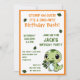En söt och rolig inbjudan till ettåring pojkes födelsedagsfest med en grön baby dinosaurie. Det är ett bra val för ett barn som älskar dinosaurier, speciellt pojkar. baby dinosaurien äter blad och designen är dekorerad med några blad. designen har en orange kant.