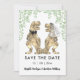 Glädja din familj och vänner med denna roliga dinosaurie-högtid inbjudan med roliga T-Rex brud och brudgum i Jurassic djungelbladverk. Lätt att anpassa med brudens och brudgummens namn och bröllopsdatum i modern typsnittsstil. Unika Tyrannosaurus rex brud och brudgum illustrationer i bruna nyanser med grönska konstverk av konstnären Catherine Sweetman