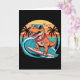 Rolig Dinosaurie Surfbräda Strand Sommar Surfande Kort