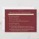 En rik jordnära marsalafärg, rolig, personlig, elegant, enkel anpassningsbar bröllops-RSVP-inbjudan, med roliga, underhållande orsaker som ska kryssas i av era gäster, om varför de kommer eller inte kommer på bröllopet. Anpassa kortet med er bröllopsdatum, svarsdatum och brudens och brudgummens namn. Ett fantastiskt, roligt, underhållande, humoristiskt RSVP till alla era vänner och familj. En rolig inbjudan för brud och brudgum att skicka som par.