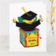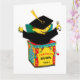 Kreativ examenspresentkort med tecknad jack-in-the-box humor. Redigera text till och namn på examen och avgångsklassens år.