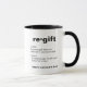 Denna humoristiska kaffekopp har en enkel svart-vit design med sex anpassningsbara textområden som lyder “regift”, “verb”, “Att ge en present som du fick till någon annan”, “substantiv”, “Ett kreativt sätt att be din far om pengar” och “Glad fadersdag”. Designen är modern och minimalistisk och kommer att bli en rolig fadersdagspresent. Ändra de sex textområdena för att passa dina behov.