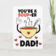 Om han älskar Pappa skämt du tror att din Pappa är Super Duper så är detta roliga fadersdags skämt kortet säkert att kittla hans funny bone. En stor skål soppa med händer som håller en soppsked och ger OK-signalen säger Du är en Soppa-pappa på framsidan och Riktigt Soppa-super på insidan. Klicka på Anpassa denna mall för att ändra eller lägga till meddelandet inuti.