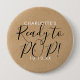 Rustik kraft chic script färdig att spricka baby shower knapp med elegant svart och vit text på en rustic kraft bakgrund. Designad av Thisisnotme©