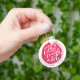 Nyckelring med rund knapp med rolig text "Drick lite vin och skratta mycket" på en röd vinfläck och lägg till din festinformation. Nyckelringar gör minnesvärda presenter till familj och vänner eller skapa en till dig själv.