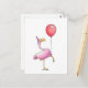 Med en rosa flamingo som bär en festhatt och håller i en röd ballong, är denna lekfulla design perfekt för alla som älskar djur, konstig konst och glada födelsedagsönskningar.