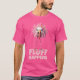 Rolig rosa flamingo unisex t-shirt design. Fet stiltext och en luddig, upprörd flamingo med fjädrar på snedben gör detta till ett underhållande sommaralternativ för strand semester. Perfekt avslappnad mode för att gå till poolen, stranden och strandbarer, eller bär den till gymmet för att få skratt från andra fitnessentusiaster.