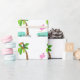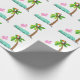 Roligt flamingoanseende för shock rosa i en pöl av vatten. Det finns en palmträd med ett toucan i det. Personifiera med födelsedagbarns namn och ålder.