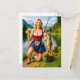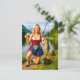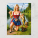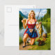 Rolig flicka fiskar i traditionell bayersk dräkt helg vykort